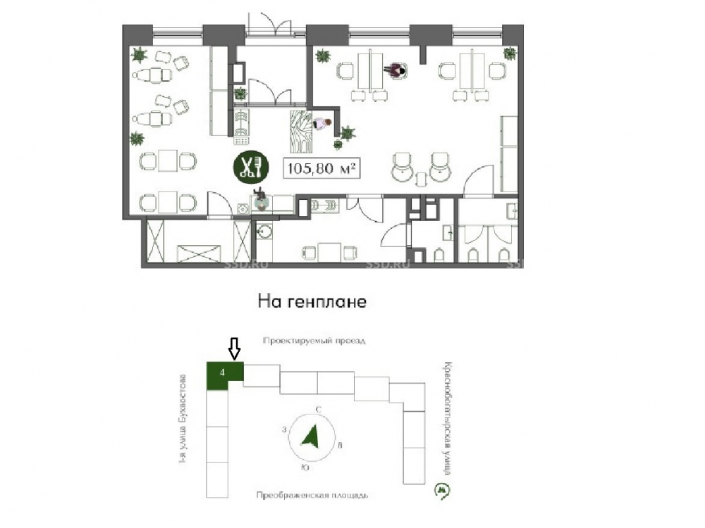 Общая площадь: 107.7 м2