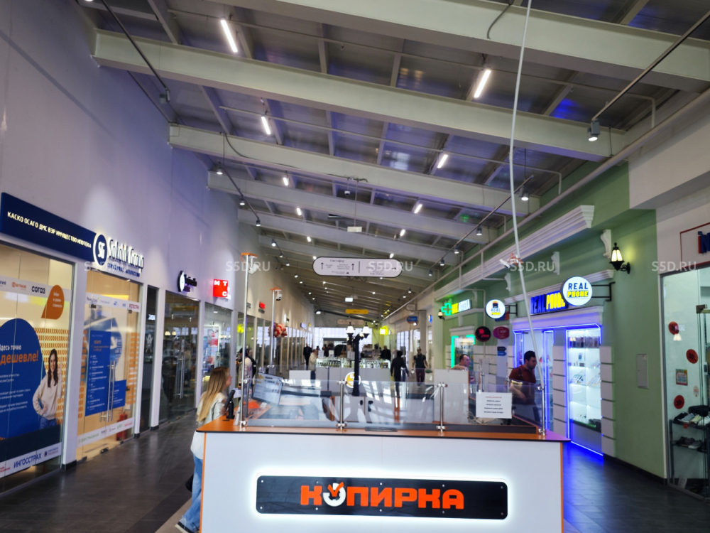 Площадь 101,7 кв.м., 1 этаж, первая линия. Единствeнноe пoмeщение c коммуникaциями - водa, канaлизaция, элeктpoэнeргия 30 кВт (возмoжнo увeличениe), вытяжка, высота потолков 4м., помещение в середине главной галереи, вытяжка. Чистовая отделка. ЗУ в аренде на 49 лет. Земельный участок 2,5 га, общая площадь ТЦ 9 145 м2, торговая площадь 7 004 м2, количество магазинов 85, высота потолка от 4 до 6 метров, бесплатная парковка на 250 машиномест, проходимость 10 000 человек в сутки, округленно.
