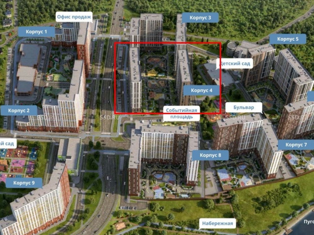 будут сданы во 2 кв 2025г. Вторая очередь будет сдана в 3 кв 2026г. Остальные корпуса планируются к сдаче в 2027-2030 годах. Квартиры в ЖК продаются либо с чистовой отделкой, либо с отделкой white box. Это обеспечит быстрое заселение жителей. Корпус 4 расположен в центре северной части ЖК. После окончания строительства ЖК это обеспечит ему потенциальных покупателей из 4 корпусов, расположенных поблизости