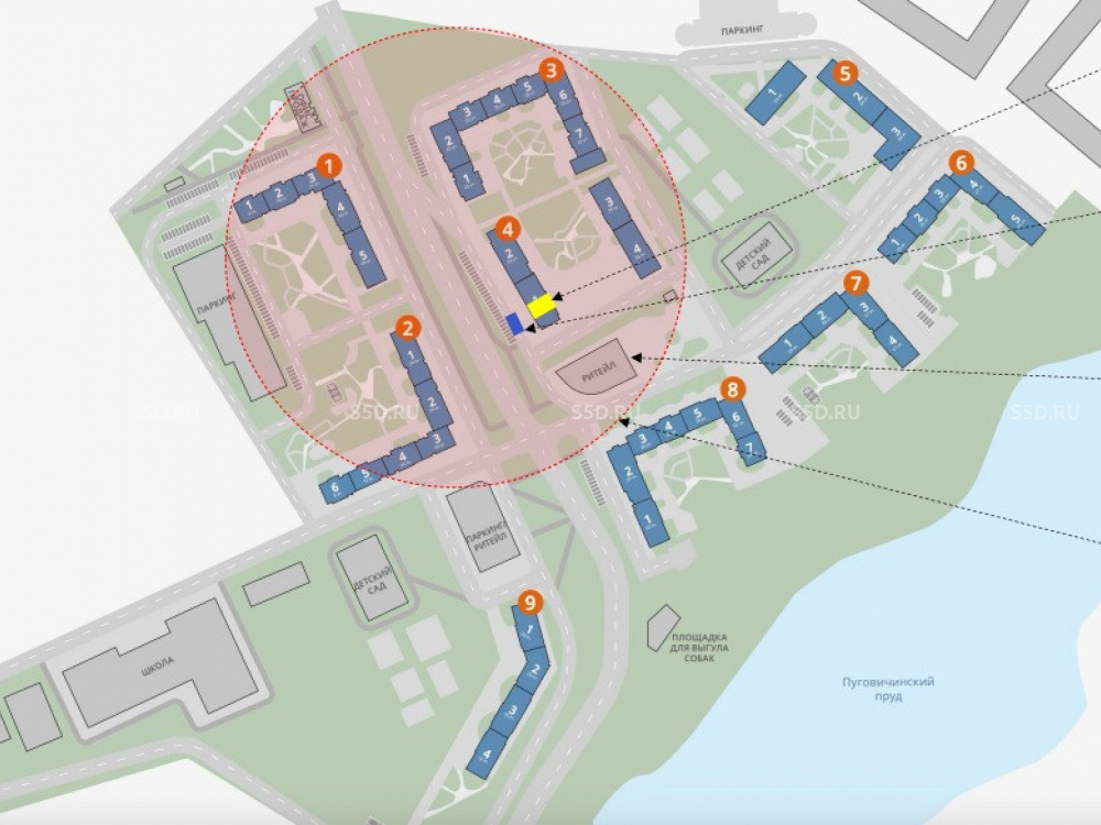 высокоэтажных корпусов (24 этажа) и 6 000 квартир, будет проживать около 15 000 жителей. Первая очередь (корпуса 1 и 2)