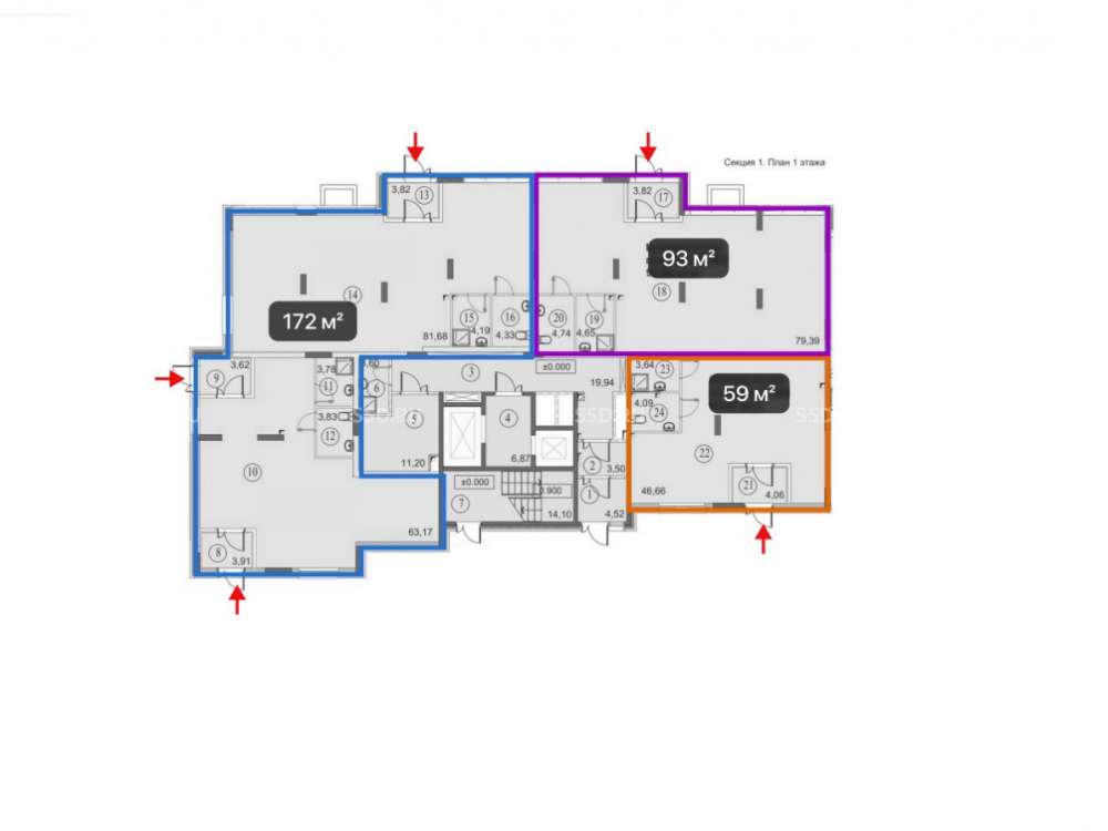 Каждый блок с отдельным входом и мокрой точкой. Витринное остекление.