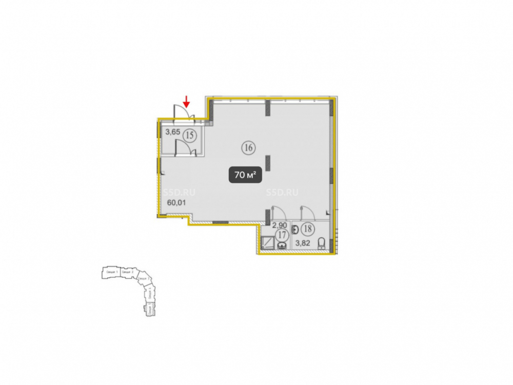 Блок с отдельным входом и мокрой точкой. Витринное остекление.