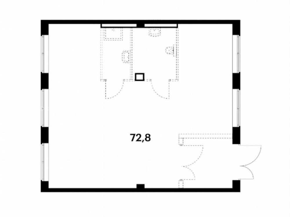 Помещение 72.8 м2 располагается на 1-м этаже, отдельный вход с фасада, витринные окна, высота потолка 4,36 м. Электрическая мощность 14.8 кВт. Место для размещения рекламы на фасаде. Парковка перед фасадом.
