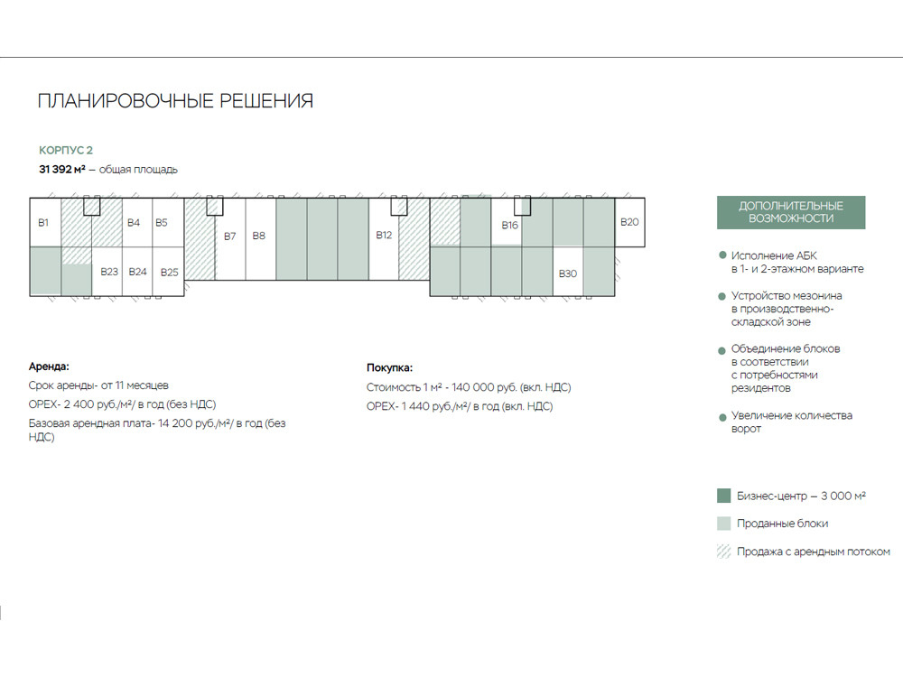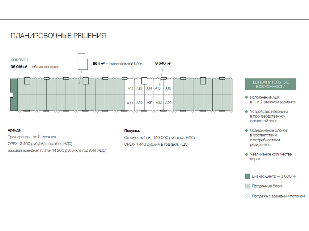 • Операционные расходы: 2 400 руб м² / в год (без НДС)