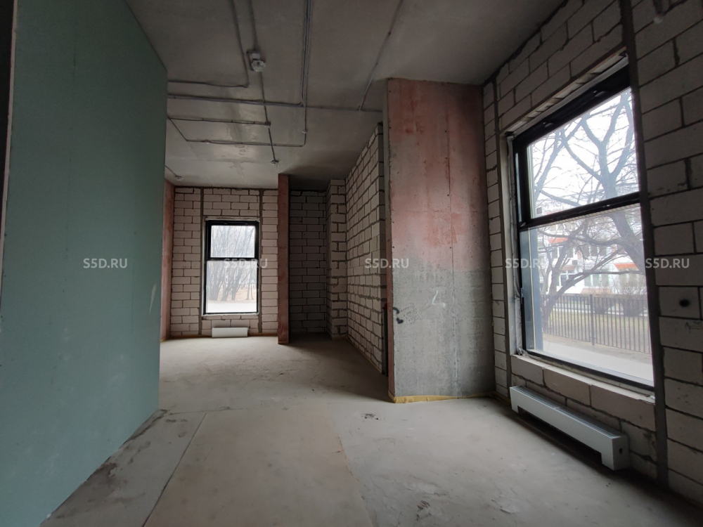 Технические характеристики: общая площадь 95.2 м2, располагается на 1 этаже 23-х этажного жилого дома 2022 года постройки, открытая планировка, высота потолка — 4.5 м, витринные окна на две стороны.