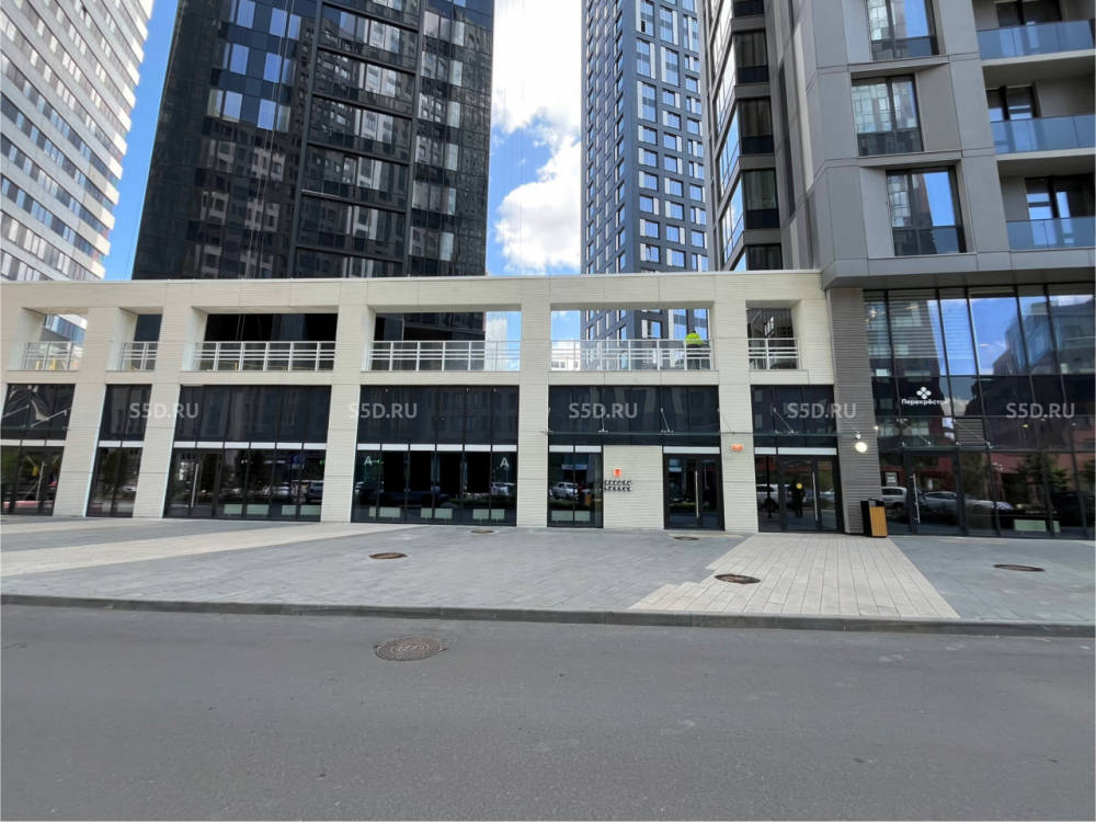1-й этаж - 600.8 м². Стилобатная часть жилого дома. Общая площадь помещения - 600.8 м². Помещение имеет 3 отдельных входов с улицы. Витринное остекление в пол. Высота потолков более 5 м. Свободная планировка. Все центральные коммуникации. Место под вывеску над входом. Отдельный вент. канал для общепита. Состояние помещения - в бетоне.