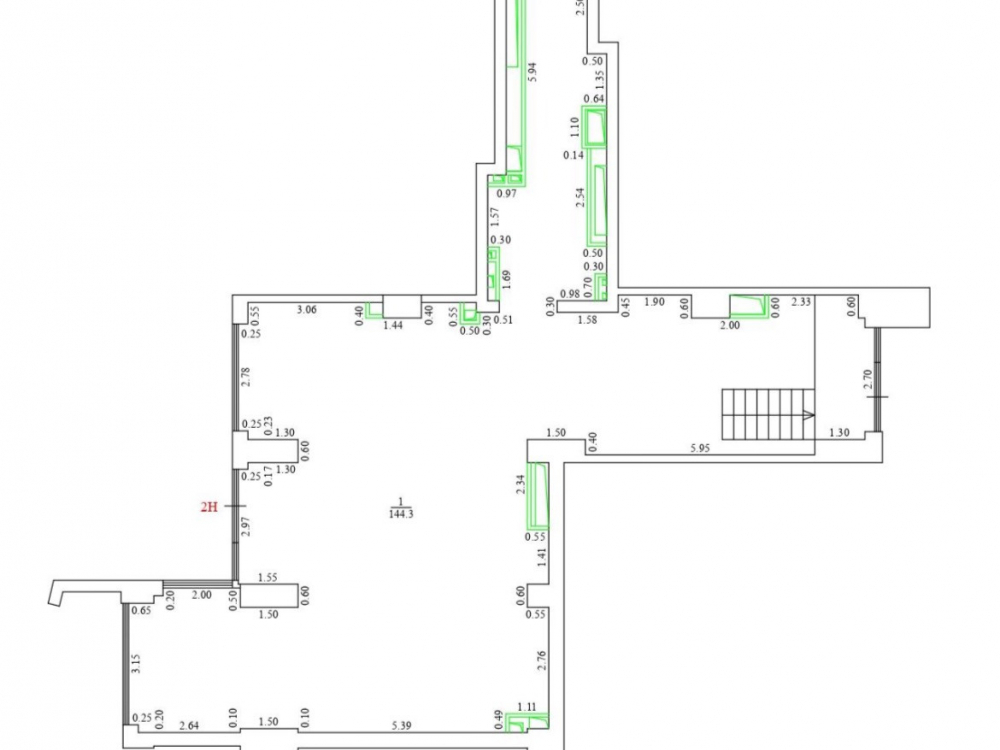 1-й этаж жилого дома. Общая площадь помещения - 144.3 м². Помещение имеет 2 отдельных входа с улицы. Витринное остекление в пол. Высота потолков более 5 м. Свободная планировка. Состояние помещения - в бетоне. Все центральные коммуникации. Место под вывеску над входом. Отдельный вент. канал для общепита.