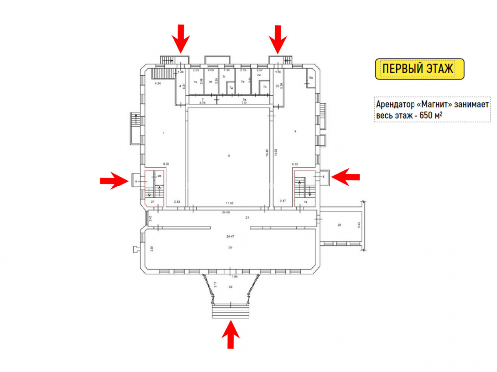 Общий МАП: 2 450 000 RUB (данный МАП является минимальным, при оптимизации арендаторов арендный поток можно значительно увеличить)