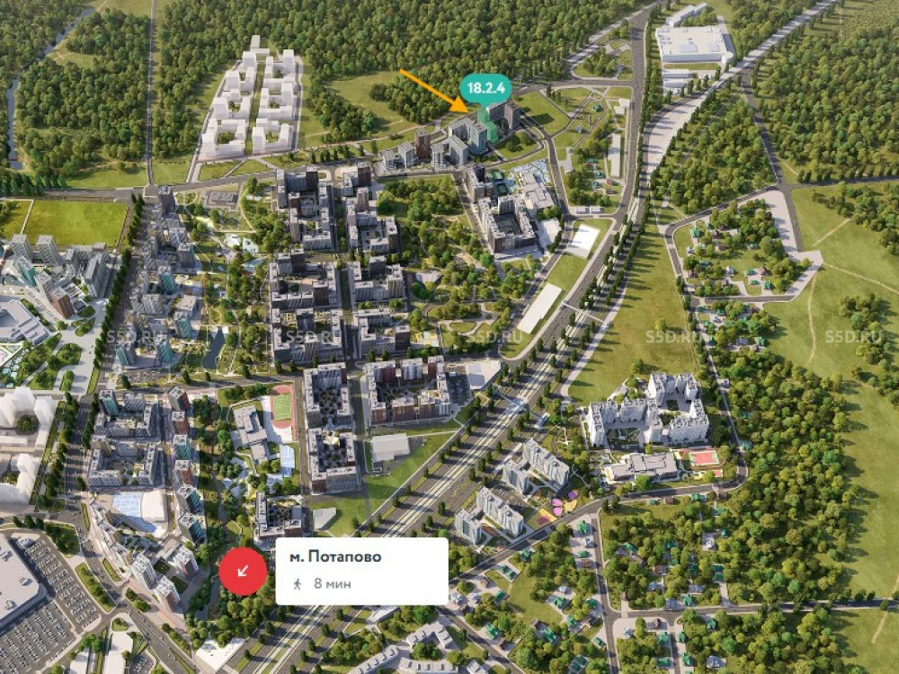 Транспортная доступность: 8 минут пешком до станции метро Потапово