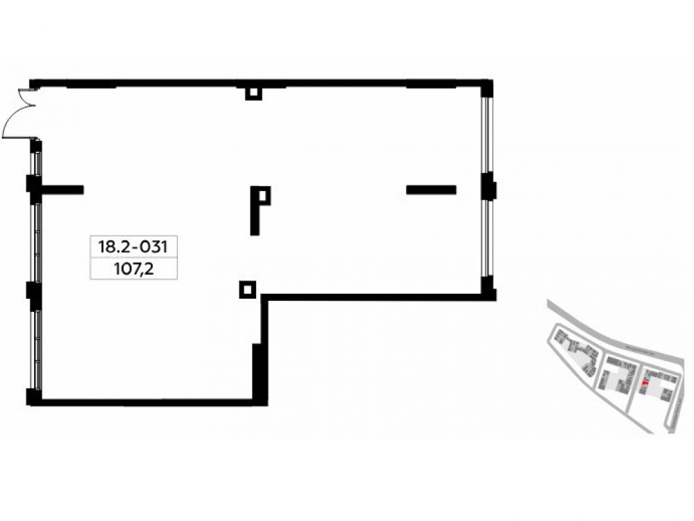 Площадь помещения 107.2 м.кв. Отдельный вход. Есть возможность организации 2го уровня (потолки 5.76 м). Помещение расположено на 1-м этаже 17-ти этажного жилого дома, находящегося в центре жилого квартала.