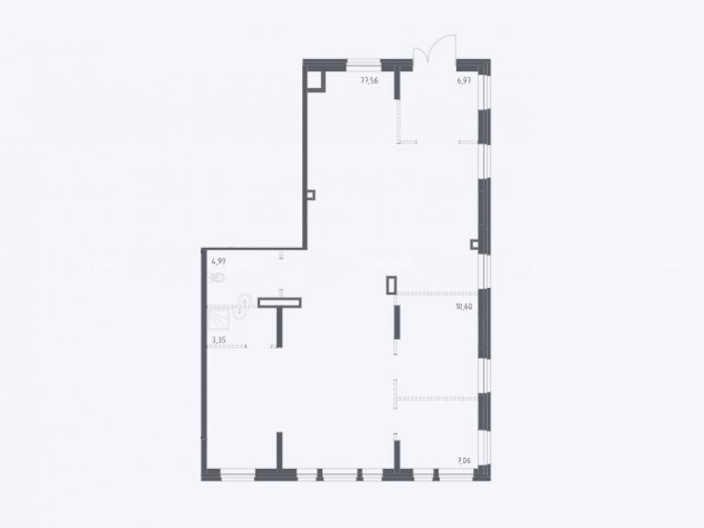 Первый этаж 17-ти этажного жилого дома, площадью 110.5 м2. Зальная планировка, витринные окна, высота потолков: 3,3 м. Выделенная мощность: 20 кВт с возможностью увеличения. Помещение в бетоне.