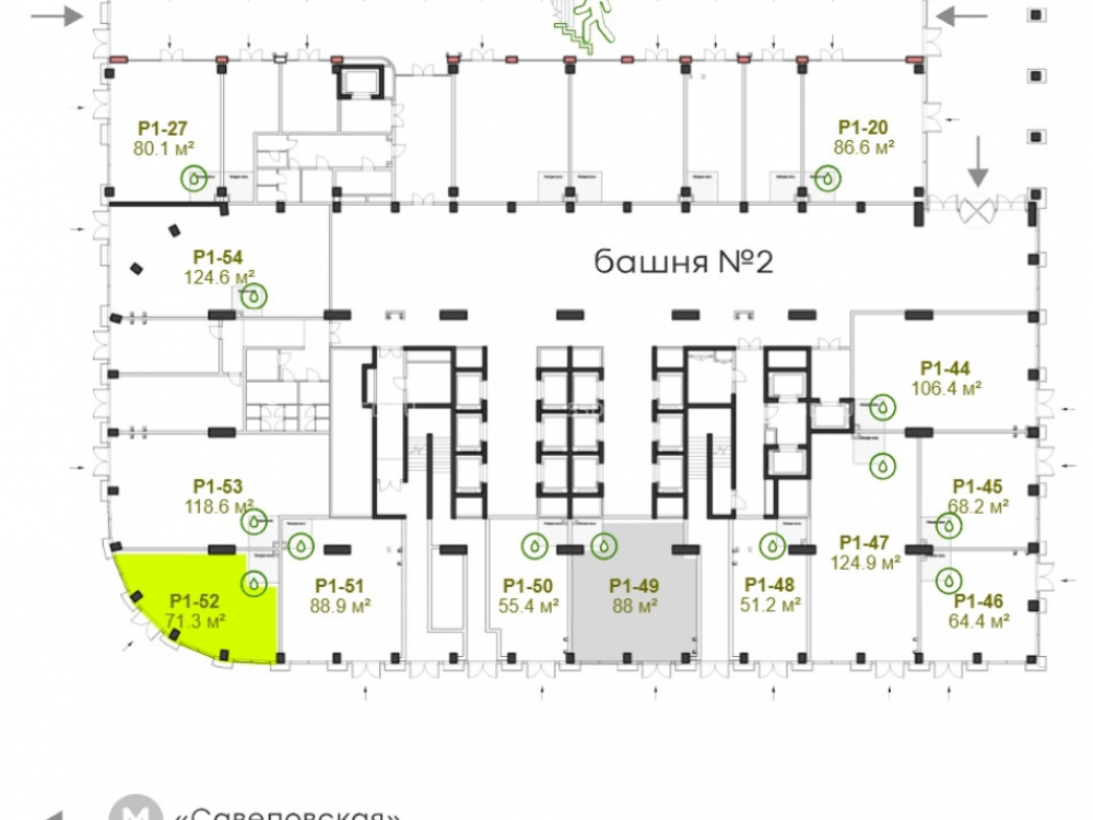 Технические параметры: общая площадью 71.3 кв. м. , расположено на 1 этаже Башни №2, угловое помещение с видом в сторону м. Савеловская