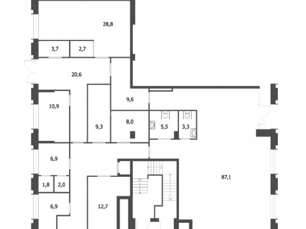 Площадь - 282.6 м²., 1-й этаж, отдельный вход, витринное остекление, высота потолков - 4,6 м. Современные инженерные системы. Выводы ХВС/ГВС, канализация. Помещение в бетоне. Подземный паркинг.