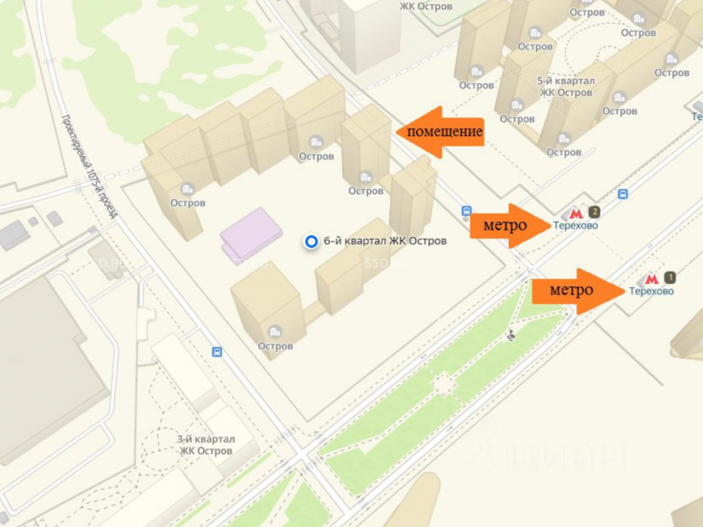 Предлагается в аренду помещение свободного назначения на 1-м этаже жилого дома, в ЖК "Остров-2", квартал 6. Первая линия. Напротив станция метро "Терехово" - 50 метров, прямая видимость. Ввод эксплуатации и выдача ключей - сентябрь 2025 года.
