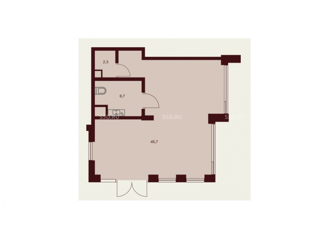 Свободная планировка • Высокие потолки (5,6 м.) с возможностью обустройства антресоли • Витражное остекление • Центральные коммуникации (ГВС/ХВС, канализация, отопление) • Мокрая точка • Эл. мощность 33,1 кВт.