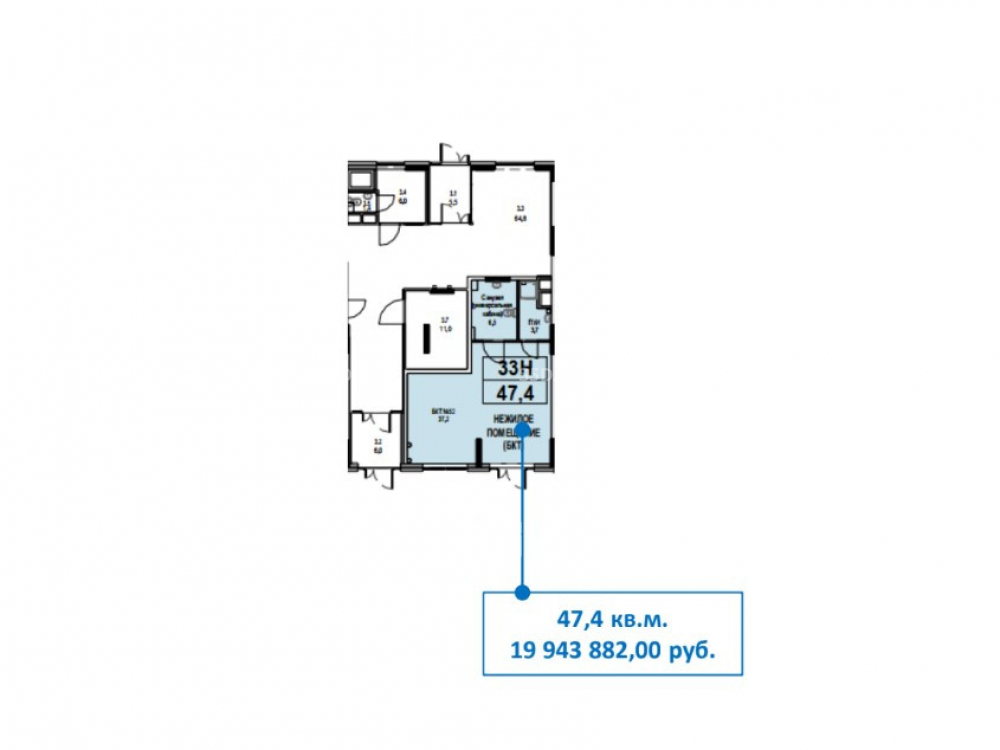 Общая площадь: 47.4 м2