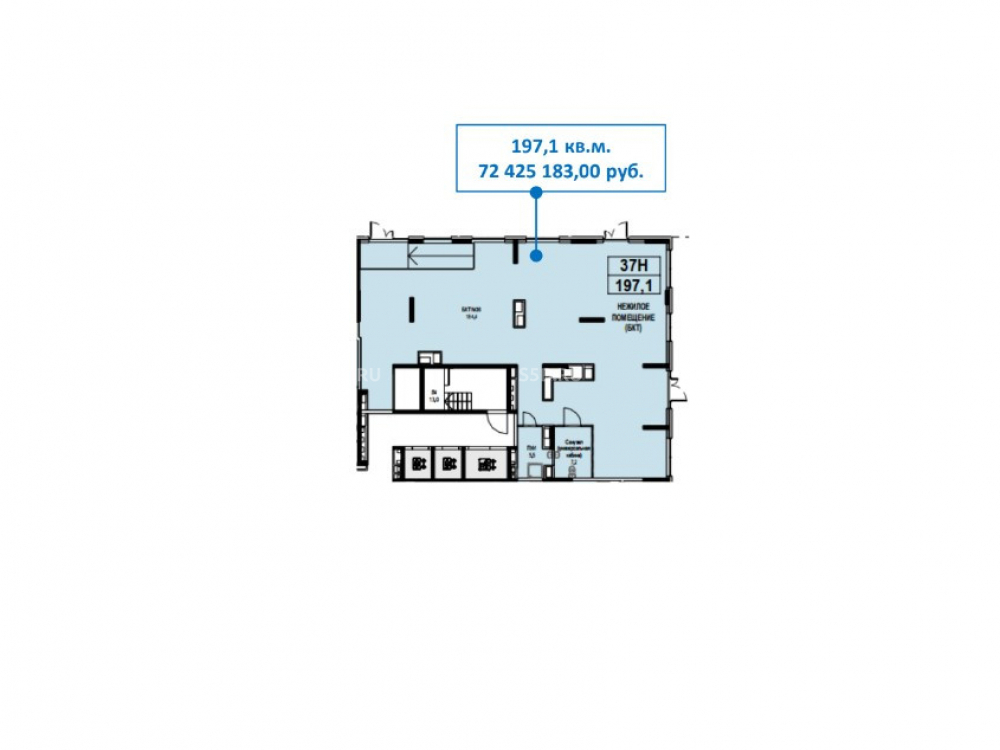 Общая площадь -197.1 кв.м., 1 этаж, угловое помещение.