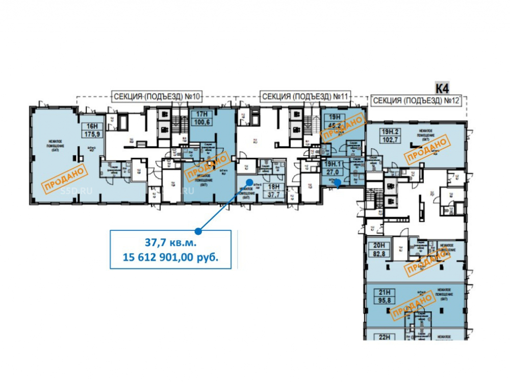 Общая площадь: 37.7 м2