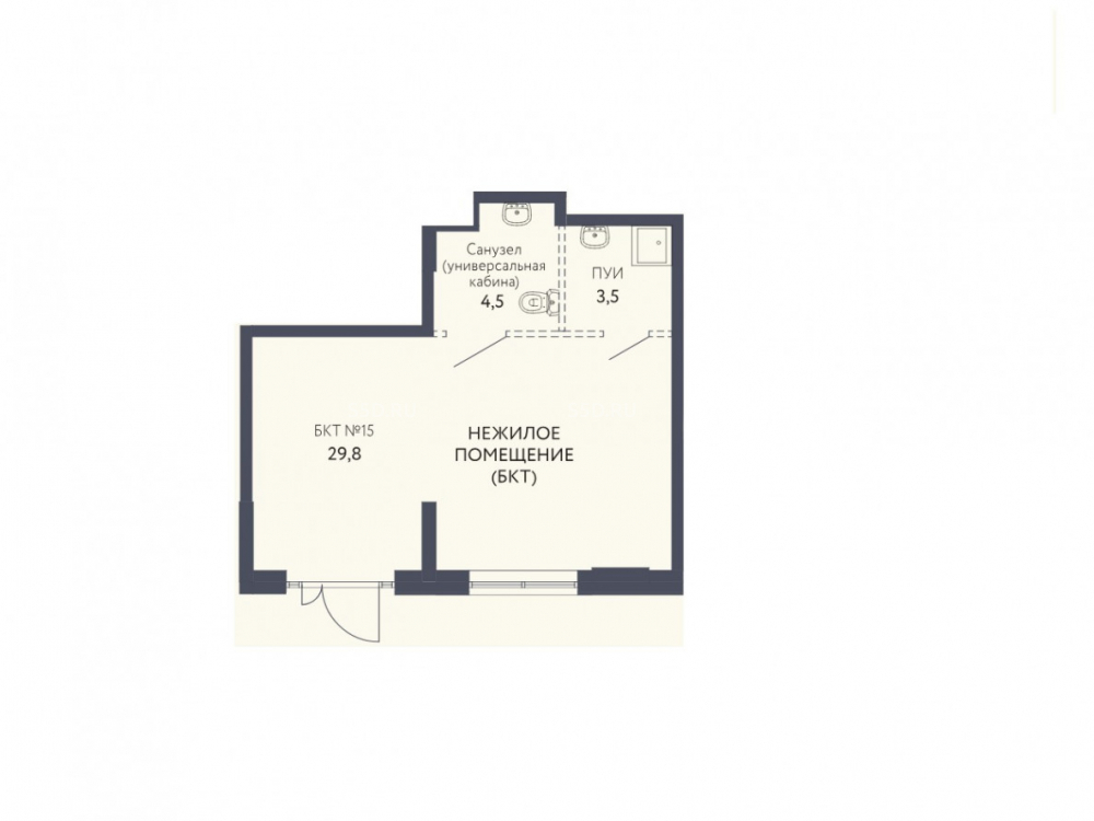 Общая площадь - 37.7 кв.м., 1 этаж, угловое помещение.