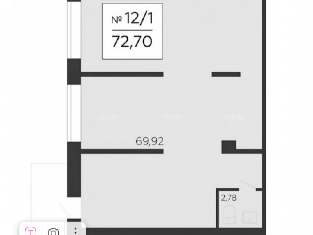 Площадь - 72.7 м²., мощность электричества 21.81 кВт., большие окна , центральные коммуникации, высота потолков - 3,3 м.