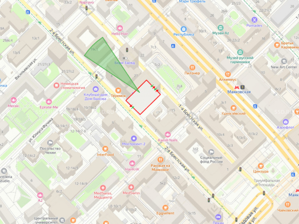 В пешей доступности расположены кафе и рестораны, магазины, центры здоровья и красоты, банки, детские сады, школы, спортивные клубы, кинотеатры, концертный зал имени П.И.Чайковского, Театр Сатиры и Театр имени Моссовета. Метро «Маяковская» находится в пяти минутах пешком.
