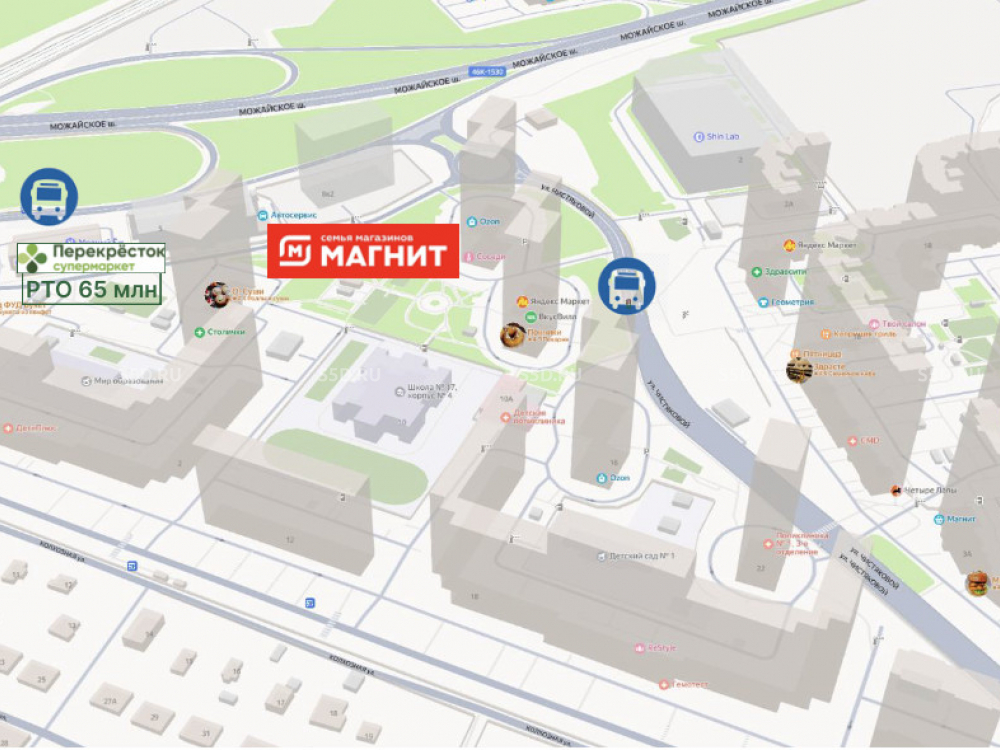Помещение находится в ЖК "Аметист" бизнес-класса. Все апартаменты сдаются в чистовой отделке. Более 7274 квартир в радиусе 500 метров. Выдача ключей: 4 квартал 2025 г. Рядом Перекресток с РТО 65 млн и Пятерочка с РТО 38 млн в месяц. МЦД Сколково в пешей доступности, 20 мин. до центра Одинцово, 5 км от МКАД.