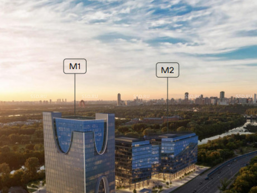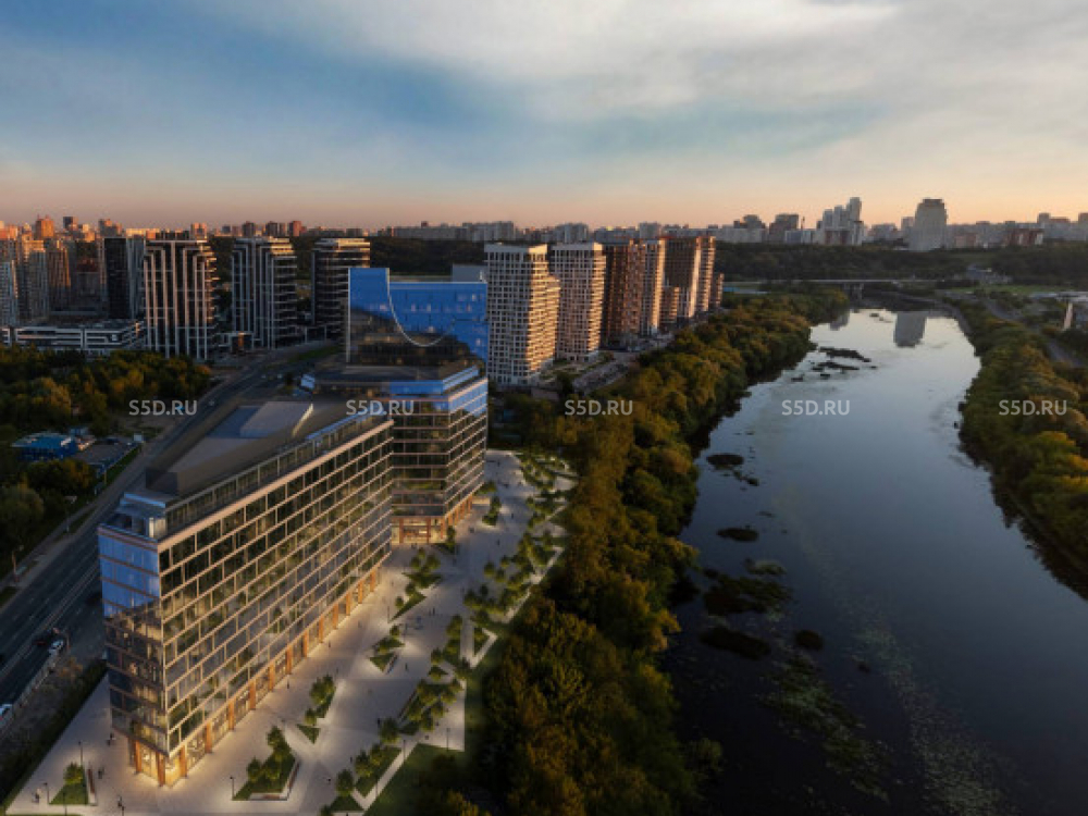 Бизнес-центр расположен в живописном районе Мнёвниковской поймы, прямо у берега Москвы-реки.