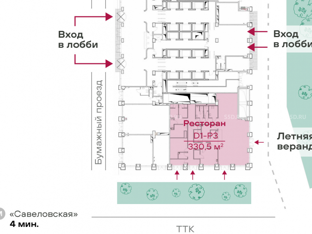 Москва, САО, БЦ TowerD D1-P3(P)/330,5м2/ Продажа ресторан с видовой верандой в парке