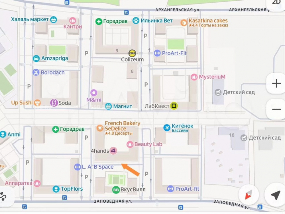 Помещение расположено на первом этаже жилого дома в заселенной и развитой с точки зрения инфраструктуры части ЖК. По соседству находятся ПВЗ, фитнес-клуб, сетевые супермаркеты и аптека.
