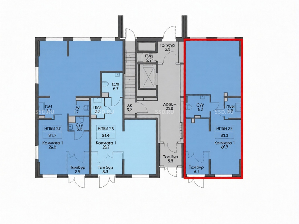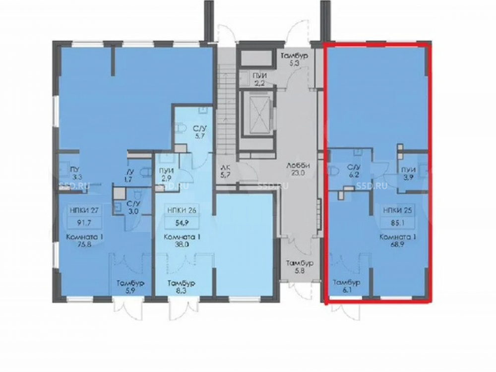 Общая площадь: 85.1 м2