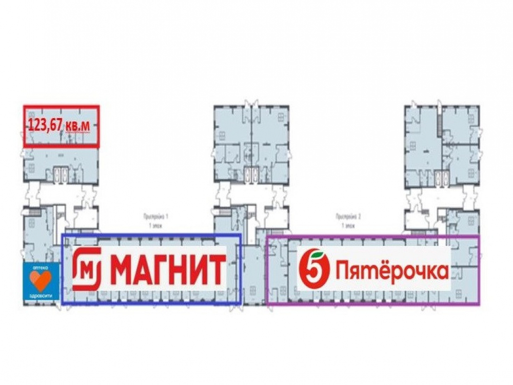 Торговое окружение: Помещение находится рядом с магазинами «Пятерочка», Здравсити и «Магнит», что обеспечивает высокую проходимость.