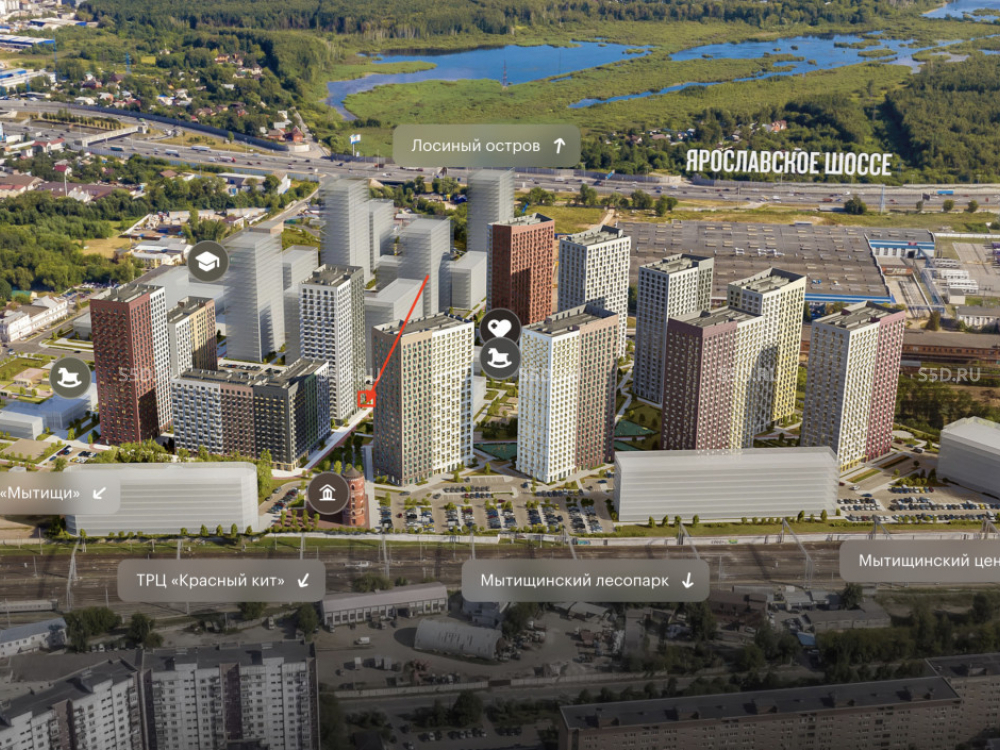 Ближайшая ЖД станция - Мытищи, 5 минут пешком. ЖК состоит из 12 корпусов переменной этажности (от 13 до 25 этажей), рассчитанных на 3 822 квартир. Плотный жилой массив, продано более 80% квартир. Высокий автомобильный и пешеходный трафик.