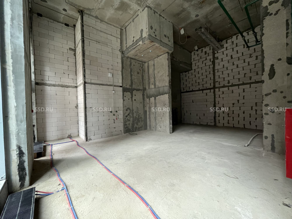 Общая площадь на 1 этаже - 77.8 м2. Отдельный вход. Наличие мокрой точки. Витринное остекление. Потолок 6.25 м, что позволяет сделать антресоль. Электрическая мощность - 26.7 кВт. Место для вывески на фасад. Состояние помещения - в бетоне.