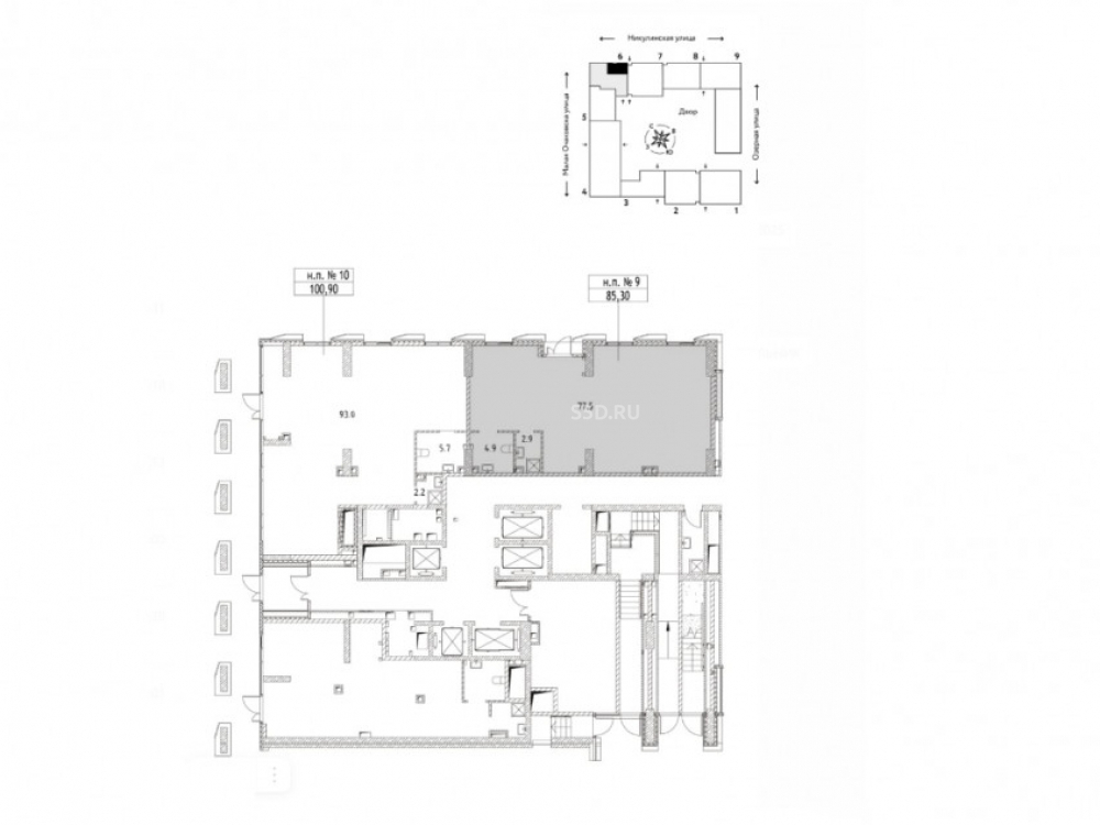 1 этаж, 1 линия. Общая площадь 85.3 кв.м.
