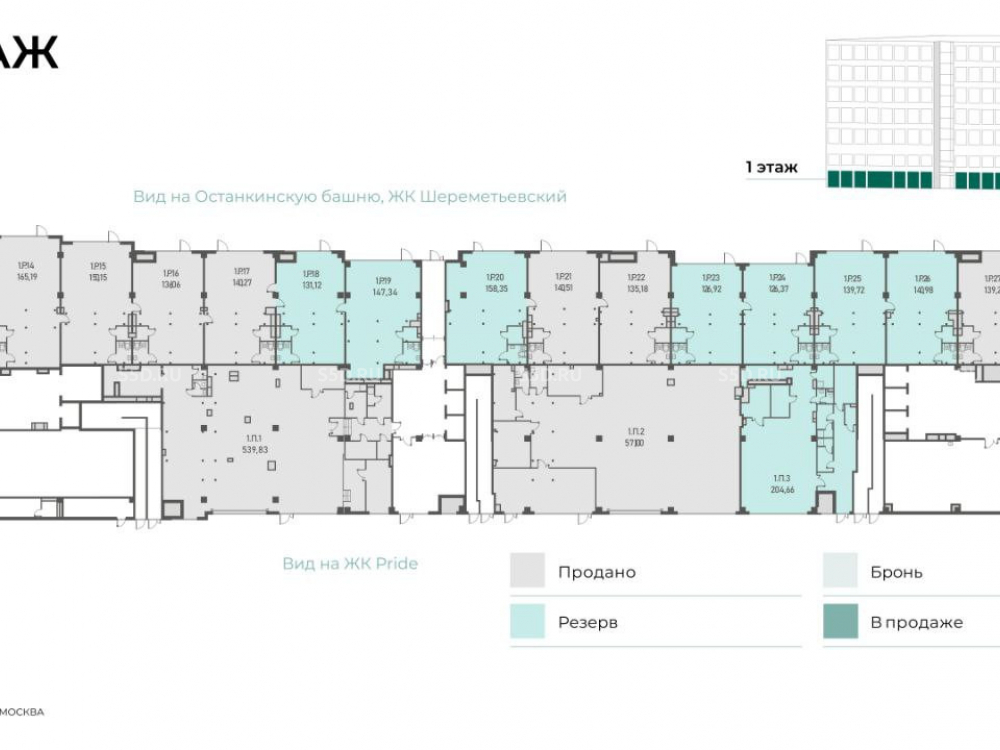 Помещение Street Retail (1.Р.25) общей площадью 139,72 кв. м. расположено на 1 этаже и имеет отдельный вход. Высота потолков составляет 6,8 м с возможностью организации антресольного уровня (антресоль занимает 30% площади). Электрическая мощность: по запросу. Подведена «мокрая точка». Запланирована современная VRV-система вентиляции и кондиционирования. Удобный подземный паркинг на 222 машино-места.