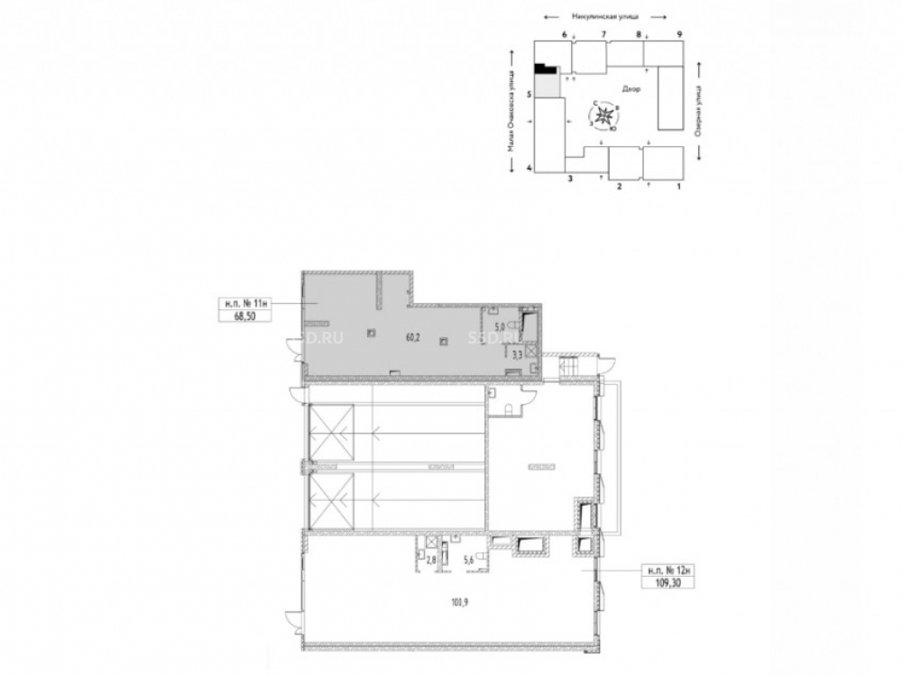 1 этаж, 1 линия. Общая площадь 68.5 кв.м.