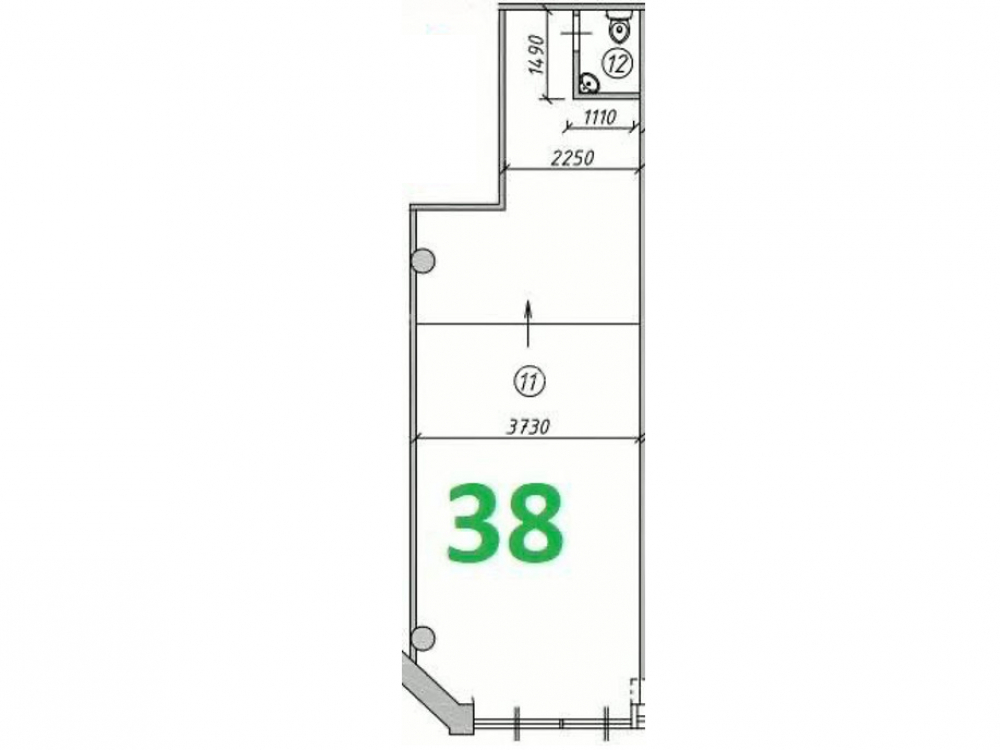 Площадь помещения 38 кв м.