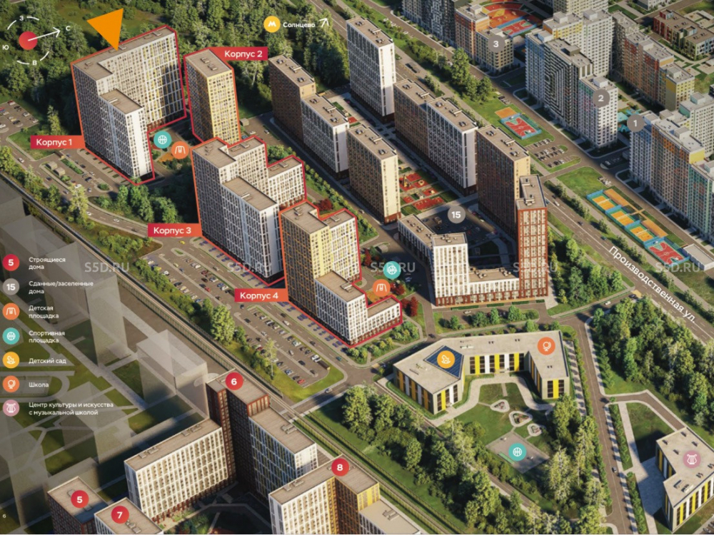 Транспортная доступность: 10 минут пешком от станций метро Боровское шоссе и Солнцево