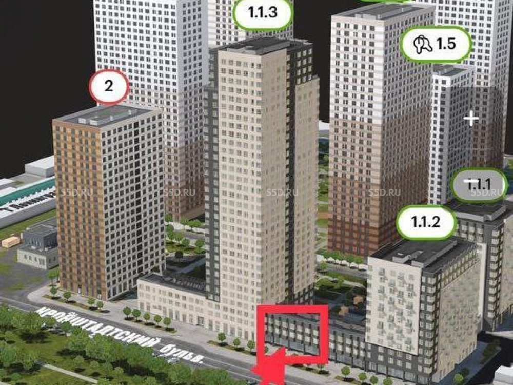 ЖК «Кронштадтский 9». Адрес: г. Москва, САО, Головинский район, Кронштадтский бульвар, 9к1. Премиальная ТОП-локация в первой линии домов на Кронштадтском бульваре. 1 минута пешком от станции метро «Водный стадион». Прямо у дома расположены остановки наземного общественного транспорта. Удобный заезд с Ленинградского шоссе. Высокий пешеходный и автомобильный трафик. Объект расположен в строящемся жилом комплексе «Кронштадтский 9», пристройка к корпусу 1.1.2 с фасадом вдоль Кронштадтского бульвара. Ввод в эксплуатацию запланирован на 3 квартал 2027 года. Отличная видимость с проезжей части.