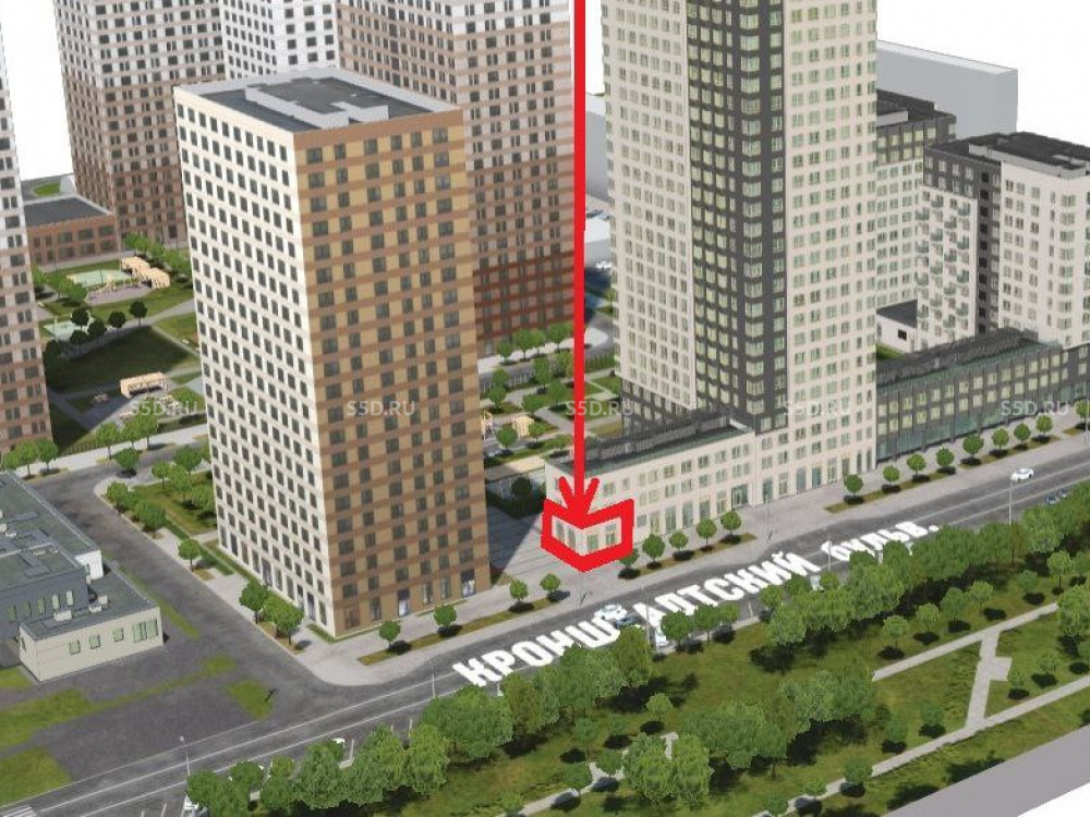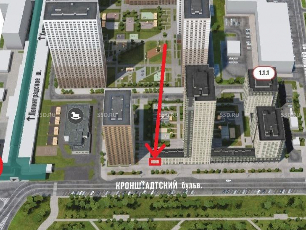 Адрес: г. Москва, САО, Головинский район, Кронштадтский бульвар, 9к1. Премиальная ТОП-локация в первой линии домов на Кронштадтском бульваре. 1 минута пешком от станции метро «Водный стадион». Благополучный и динамично развивающийся район, плотная застройка. Прямо у дома расположены остановки наземного общественного транспорта. Удобный заезд с Ленинградского шоссе. Высокий пешеходный и автомобильный трафик. Объект расположен в строящемся жилом комплексе «Кронштадтский 9», в пристройке к корпусу 1.1.3., в самом выгодном расположении, УГОЛ! Ввод в эксплуатацию запланирован на 3 квартал 2027 года. Отличная видимость с проезжей части.