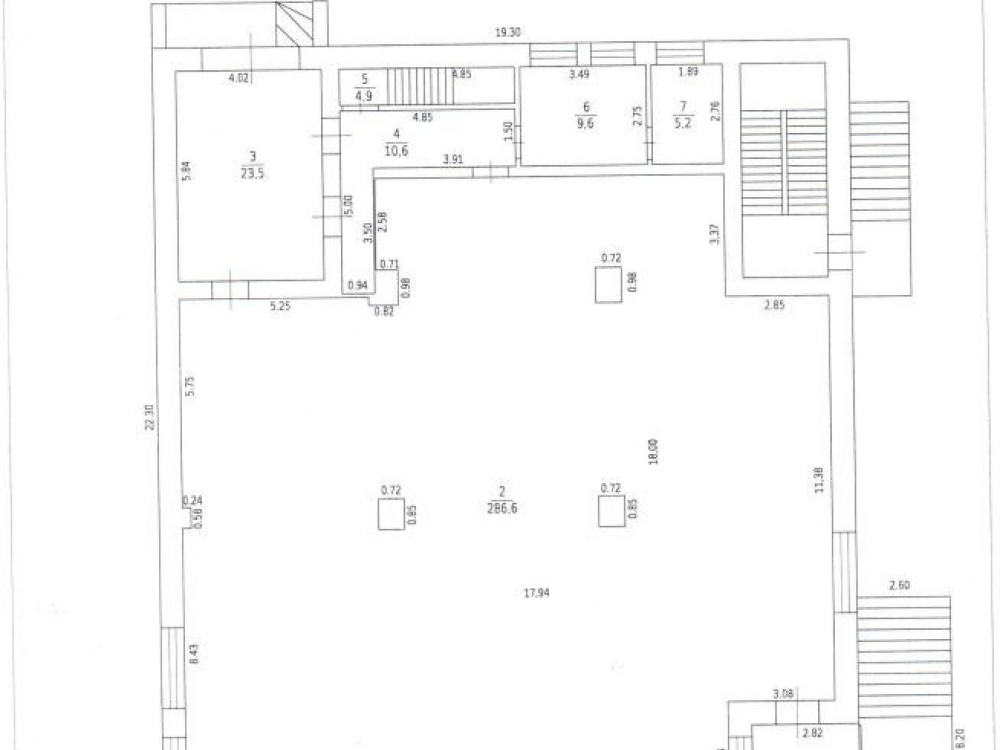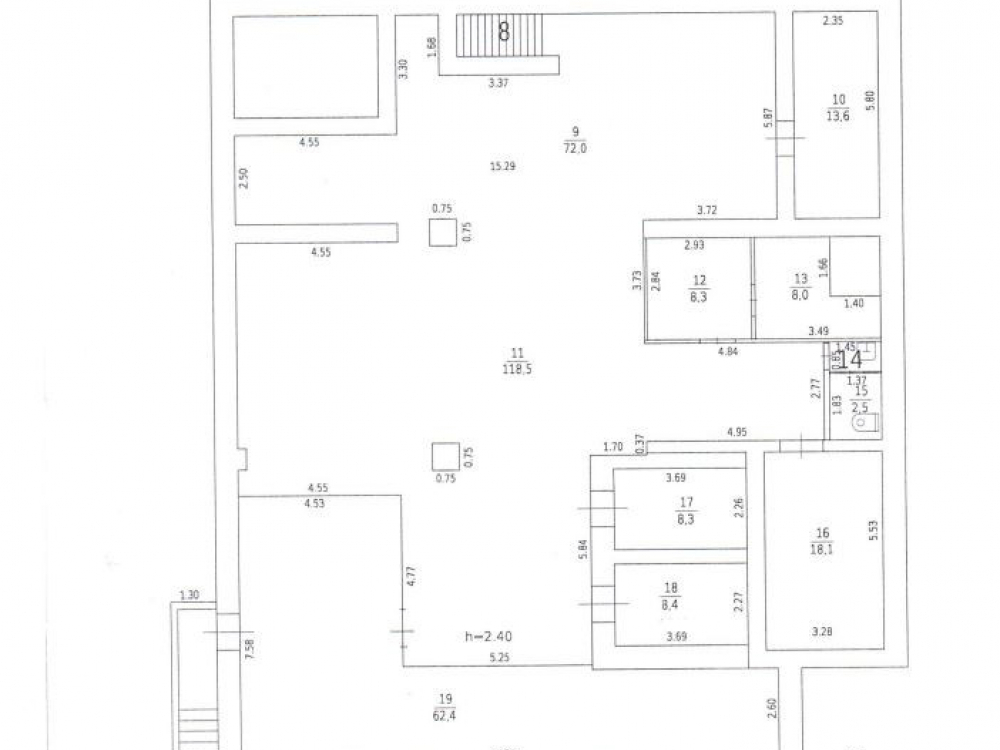 Помещение общей площадью 656 м2 (1-й этаж 276 м2 (еще на 114 м2 сидит КБ), -1 этаж - 380 м2), открытая планировка, высота потолков 3м. Коммуникации центральные (Электричество 50 кВт, возможно увеличение до 100 кВт).