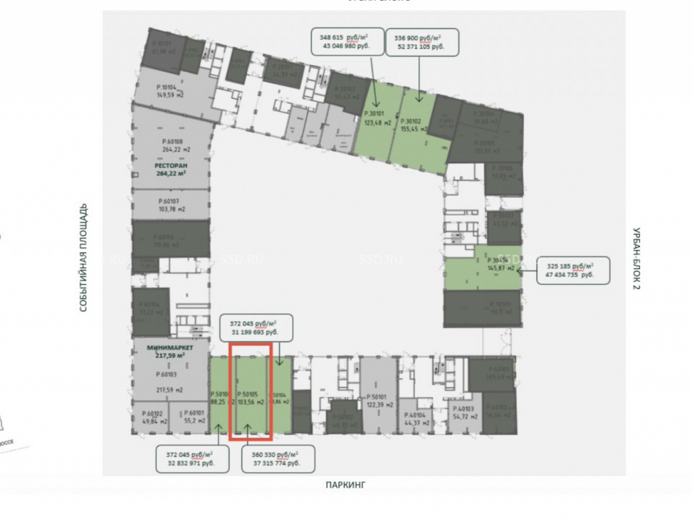 Технические характеристики: Площадь - 103.56 кв.м, отдельный вход, витринное остекление. Электрическая мощность - 200 Вт/м². Отделка shell&core.