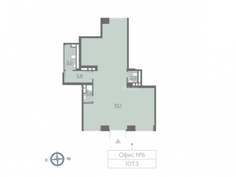 Общая площадь 107.3 м2. 1-й этаж жилого дома. Отдельный вход с улицы. Витринное остекление. Мокрая точка. Эл. мощность 26.8 кВт. Все центральные коммуникации.