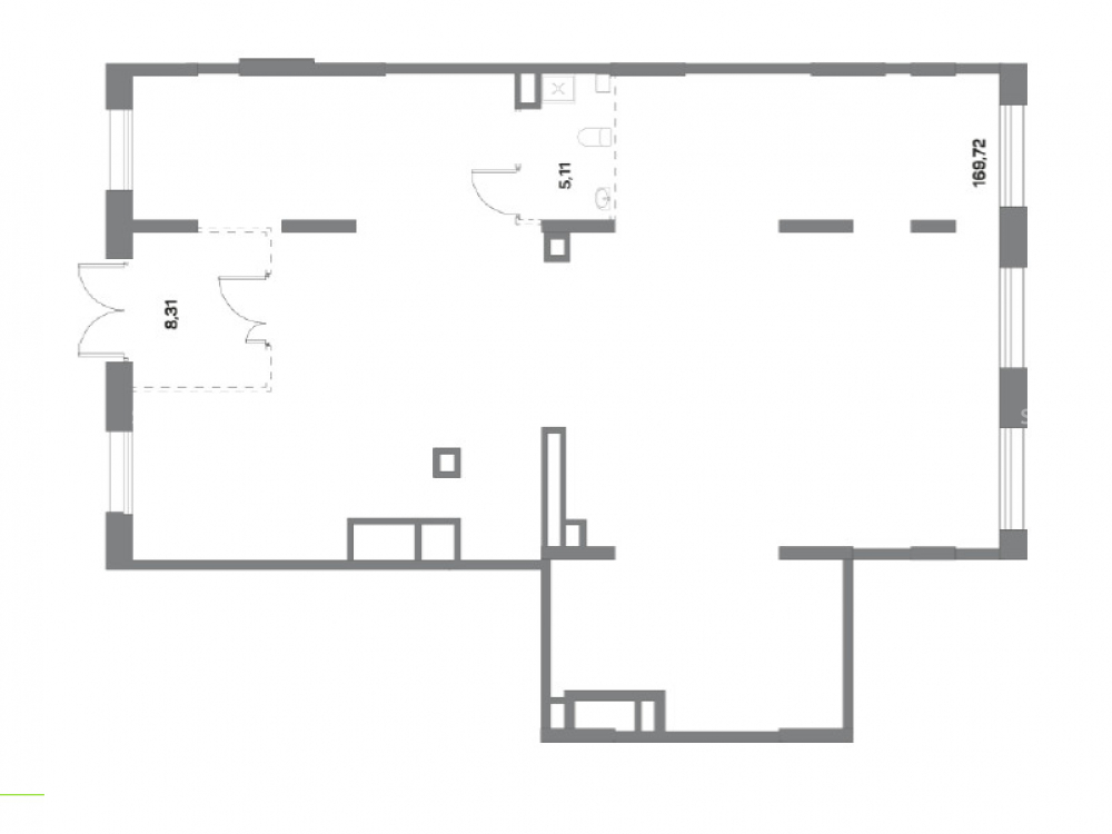 Технические характеристики: общая площадь 183.14 кв.м. • первый этаж жилого 14 этажного дома • электроэнергия 0.2кВт/м2. • отдельный 1 вход • без отделки • потолки 4 метра • центральные коммуникации • витринные окна • первая линия.
