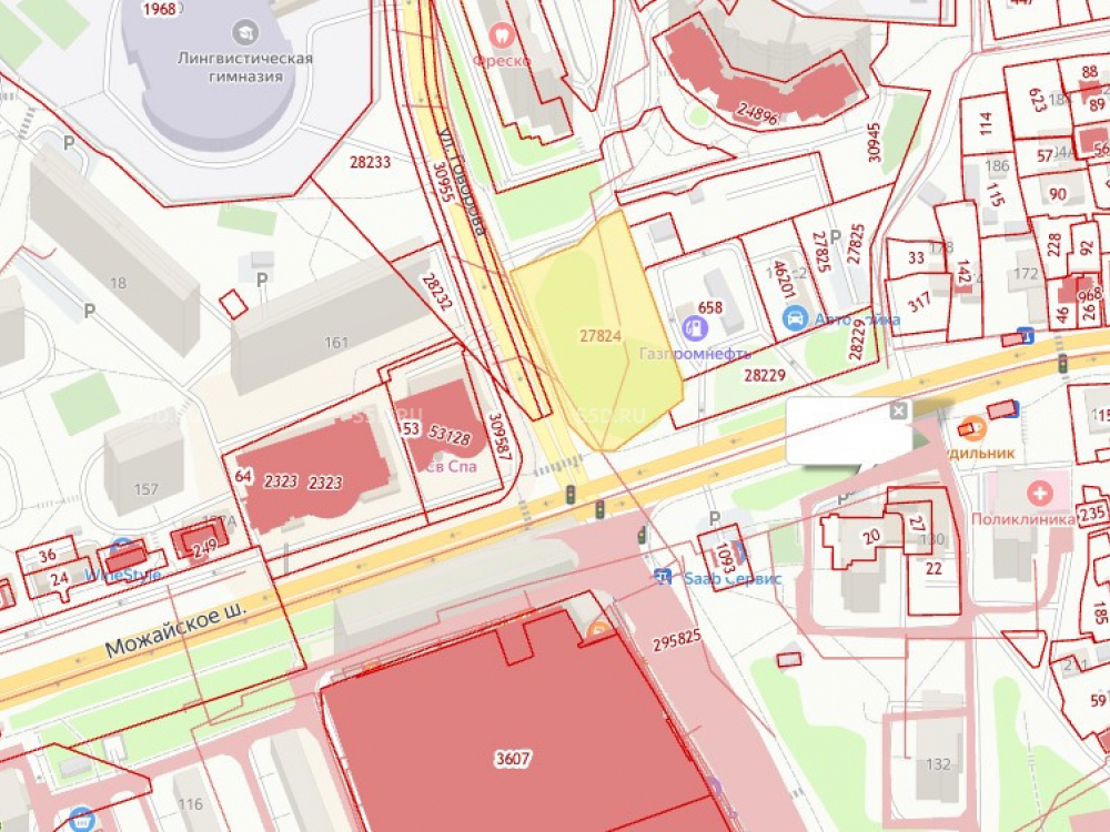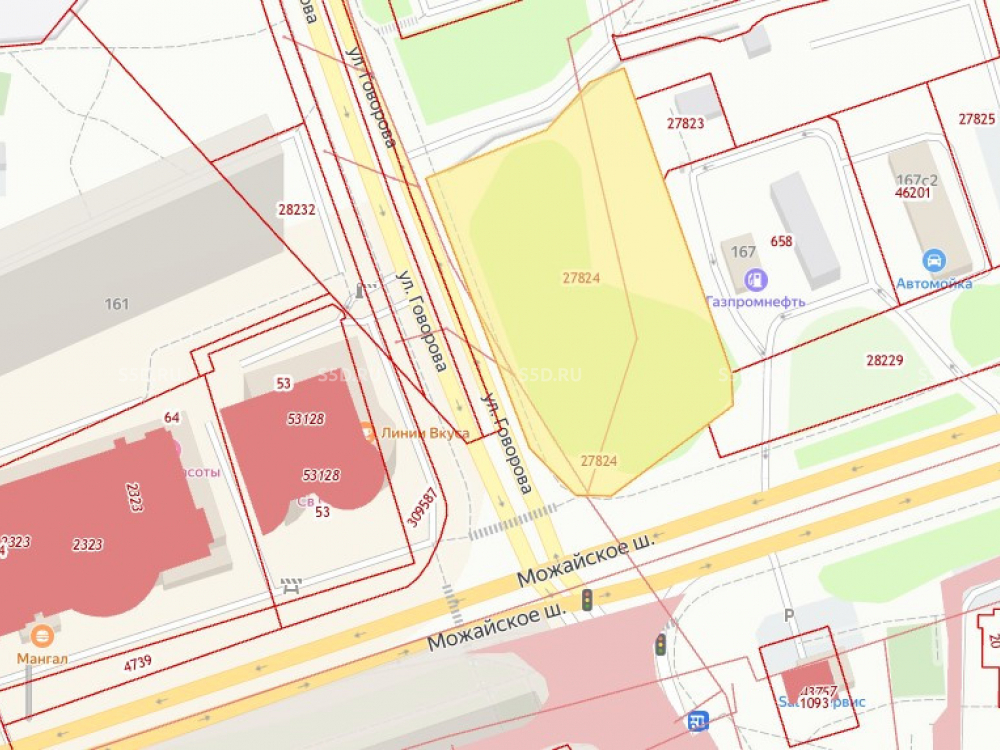 Участок находится на главном въезде в город на пересечении Можайского шоссе и улицы Говорова, обеспечивая 100% видимость и прямую доступность для всего автомобильного потока. Первая линия на магистральной дороге, являющейся единственным основным въездом. Обеспечивает сверхинтенсивный автомобильный трафик.