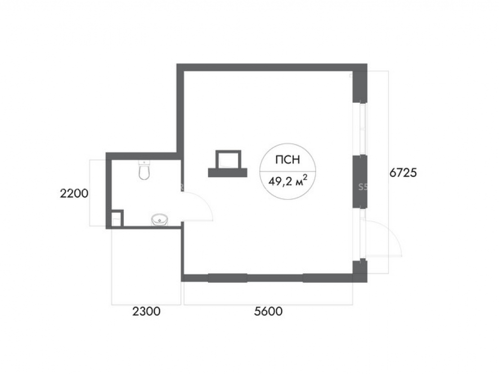 Общая площадь помещения 42.2м2, 1 этаж, 1 отдельный вход, витринные окна. Высокие потолки - 5.1 метр (возможность организации антресоли) Электрическая мощность – 8,5 кВт. Центральные коммуникации (ГВС / ХВС, канализация, отопление). Возможность установки вент. оборудования и кондицианирования.