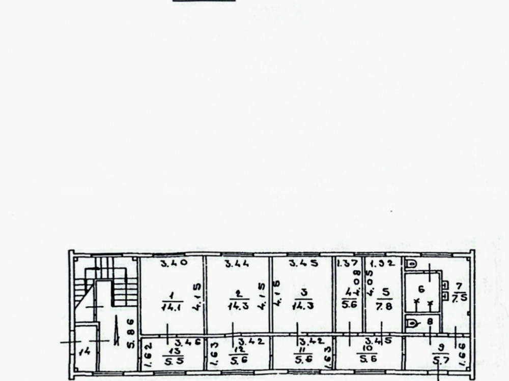 Общая площадь – 467,1 кв. м., Площадь в четырех этажном здании. Планировка кабинетная. Стояки с обоих сторон здания.