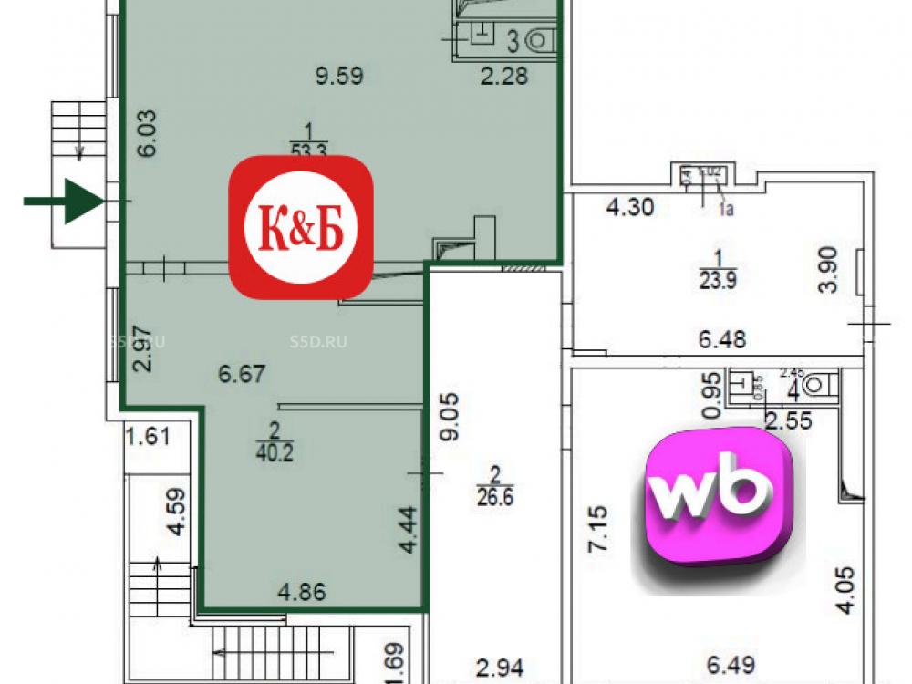 Общая площадь: 95 кв. м., 1 этаж. Отдельный вход. Смешанная планировка. Высота потолков: 3 м. Электрическая мощность: 28 кВт.