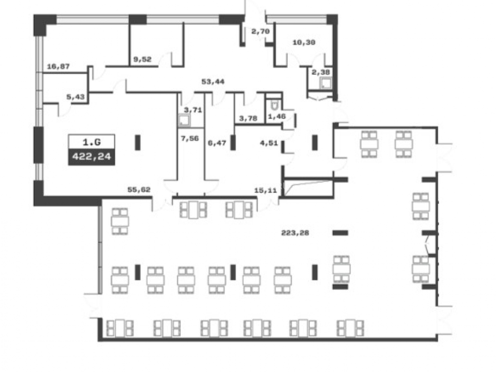 Площадь - 422.2 м²., располагается на 1 этаже, высота потолков - 4.15 м., без отделки, выходов 5.