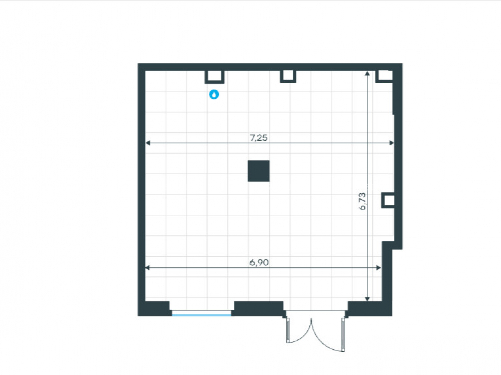 Технические характеристики: общая площадь 47,4 кв.м. • первый этаж в жилом 26 этажного дома • высота потолков 7,95 метров • электроэнергия 12 кВт. • отдельный вход с улицы • 1я линия • без отделки • центральные коммуникации.